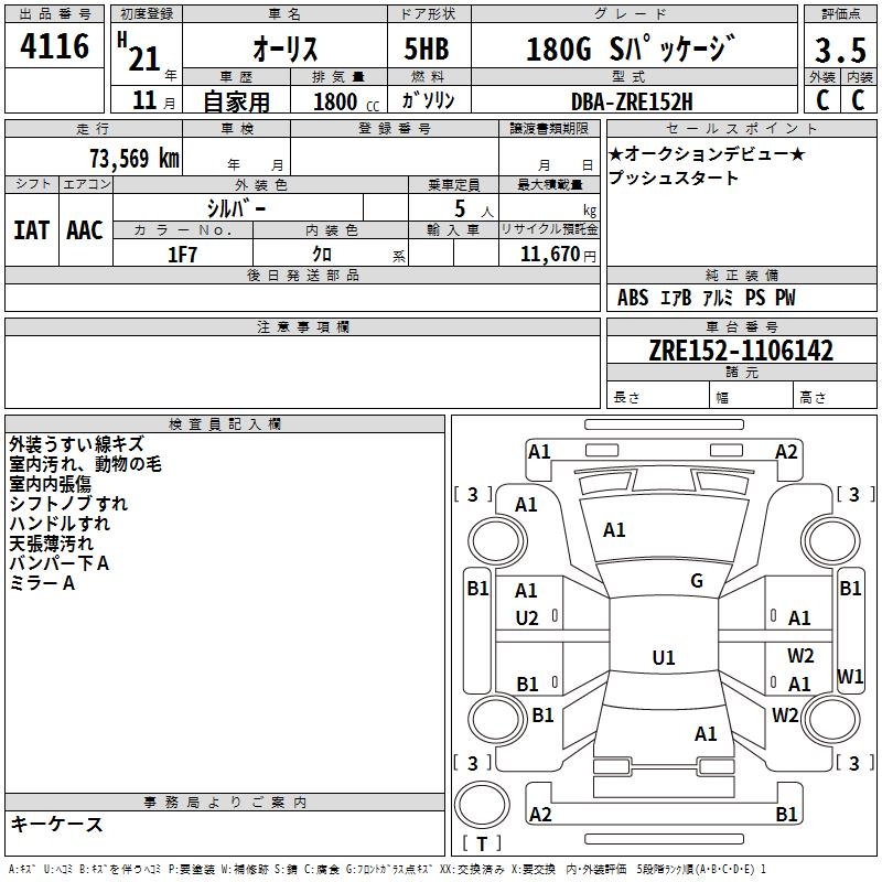 TOYOTA AURIS - лот 4116