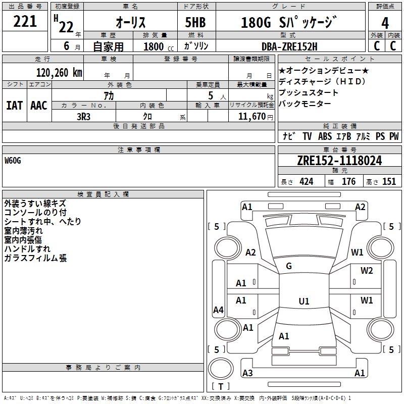 TOYOTA AURIS - лот 221