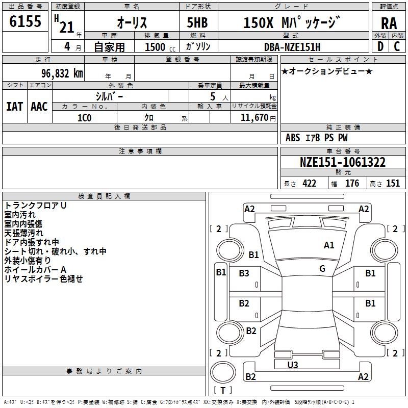 TOYOTA AURIS - лот 6155