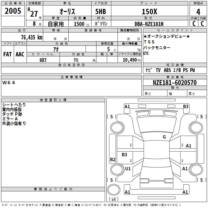 TOYOTA AURIS - лот 2005