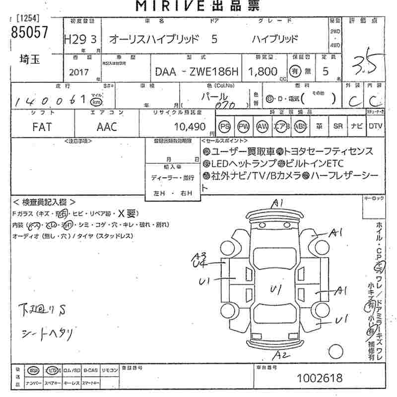 TOYOTA AURIS - лот 85057