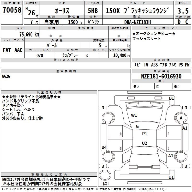 TOYOTA AURIS - лот 70058