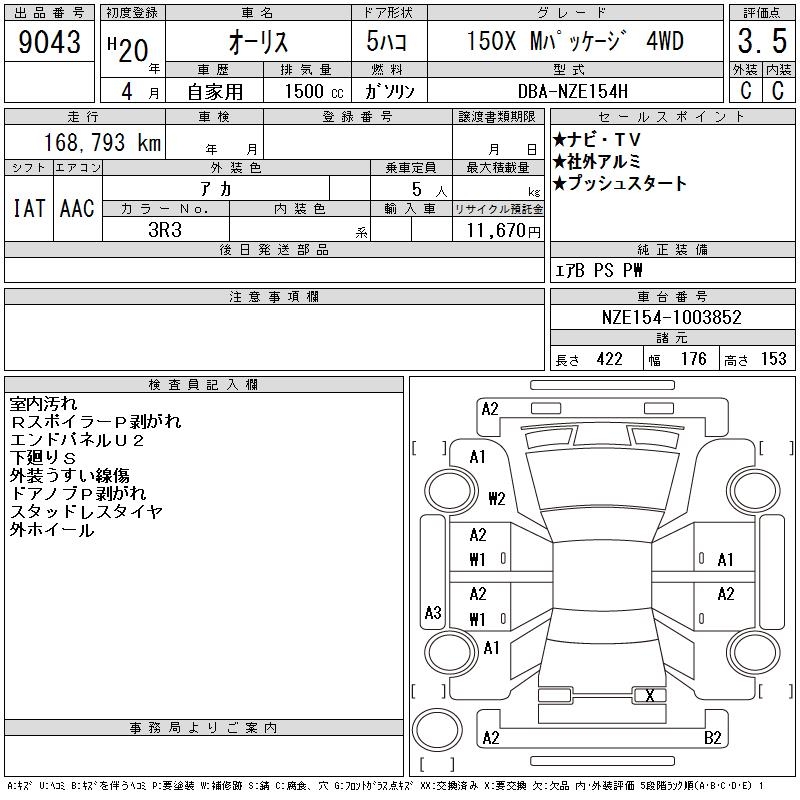 TOYOTA AURIS - лот 9043