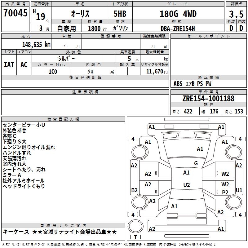 TOYOTA AURIS - лот 70045