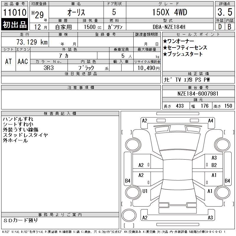 TOYOTA AURIS - лот 11010