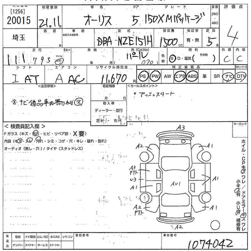 TOYOTA AURIS - лот 20015