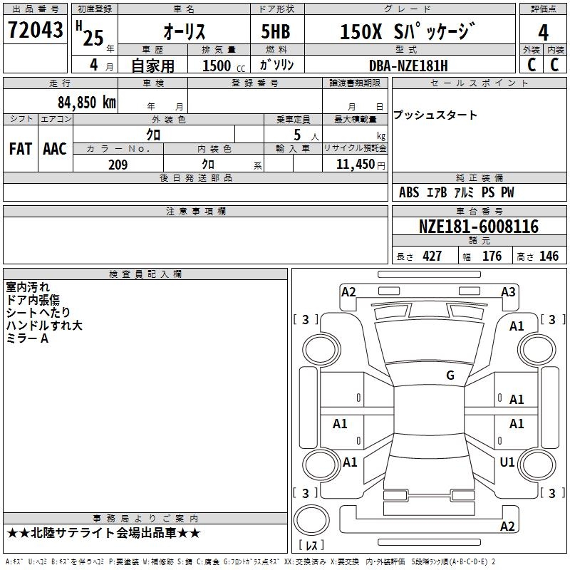 TOYOTA AURIS - лот 72043