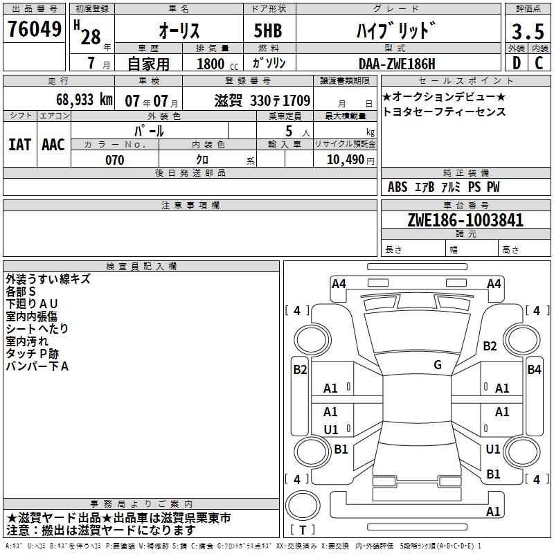 TOYOTA AURIS - лот 76049