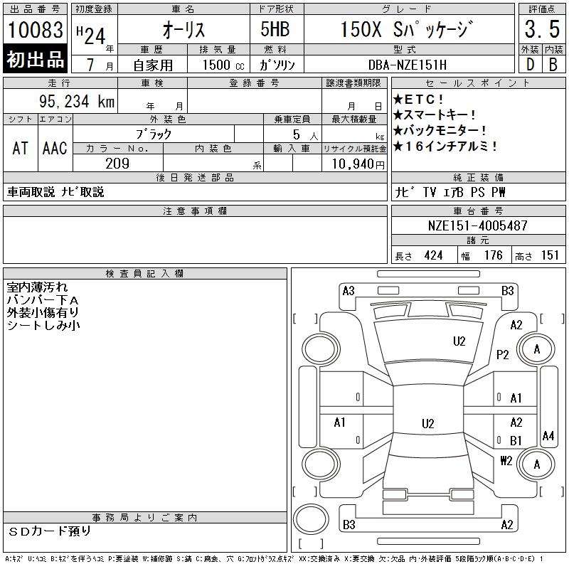 TOYOTA AURIS - лот 10083