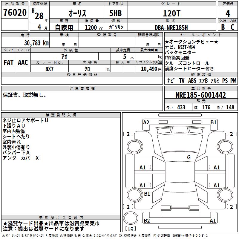TOYOTA AURIS - лот 76020