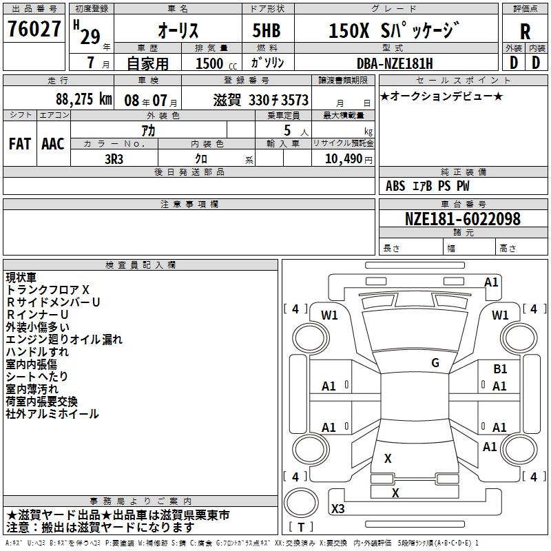 TOYOTA AURIS - лот 76027