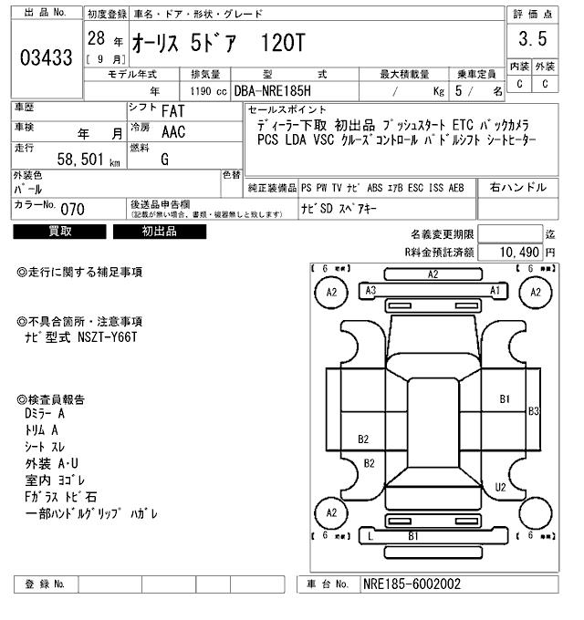 TOYOTA AURIS - лот 3433