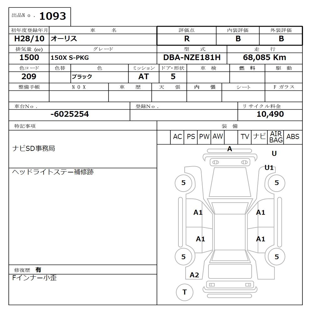 TOYOTA AURIS - лот 1093