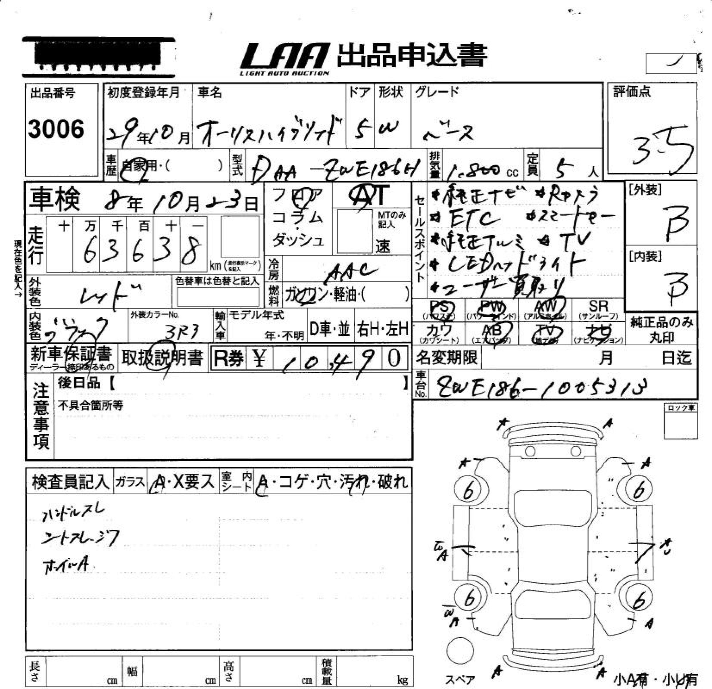 TOYOTA AURIS - лот 3006