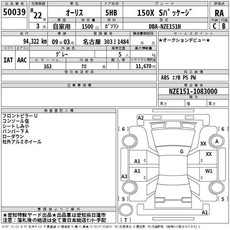 TOYOTA AURIS - лот 50039