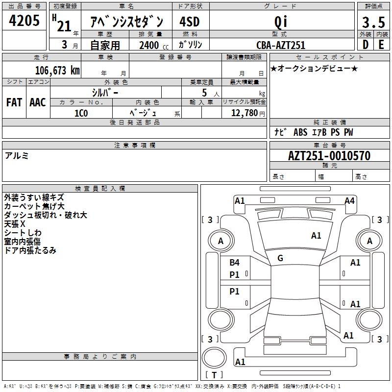 TOYOTA AVENSIS SEDAN - лот 4205