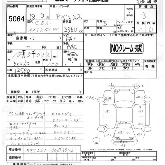 TOYOTA AVENSIS - лот 5064