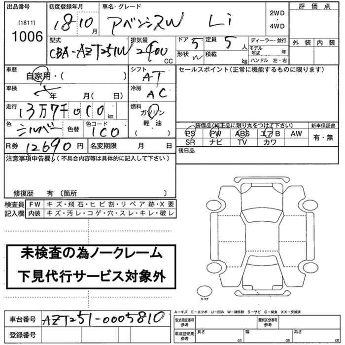 TOYOTA AVENSIS WAGON - лот 1006