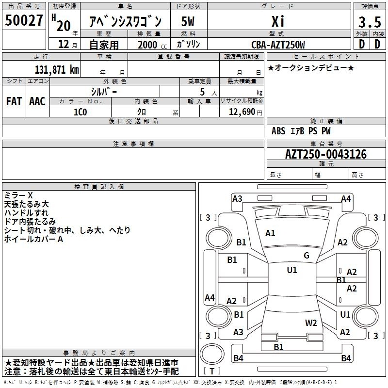 Все аукционы TOYOTA AVENSIS WAGON