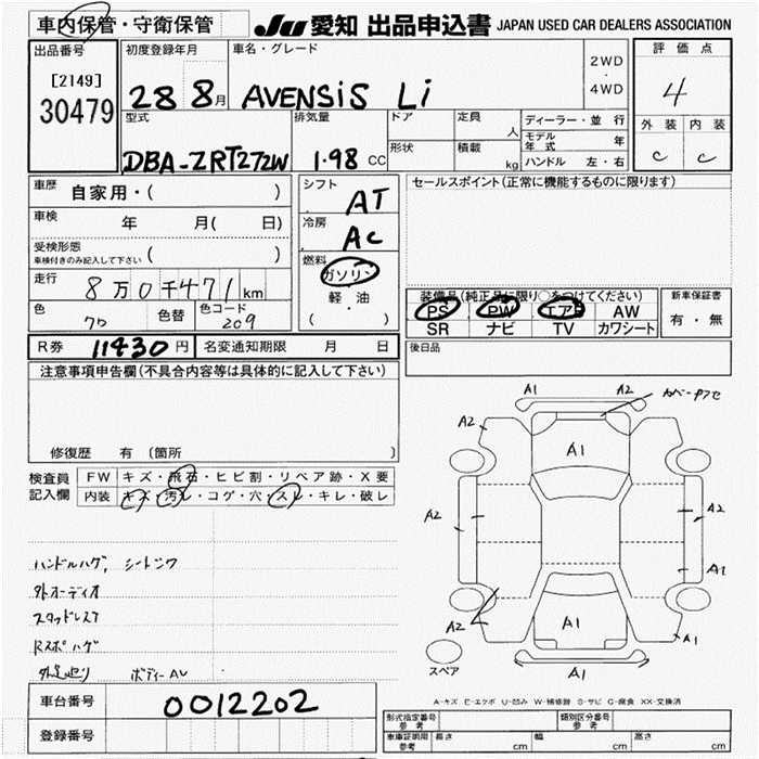 TOYOTA AVENSIS WAGON - лот 30479