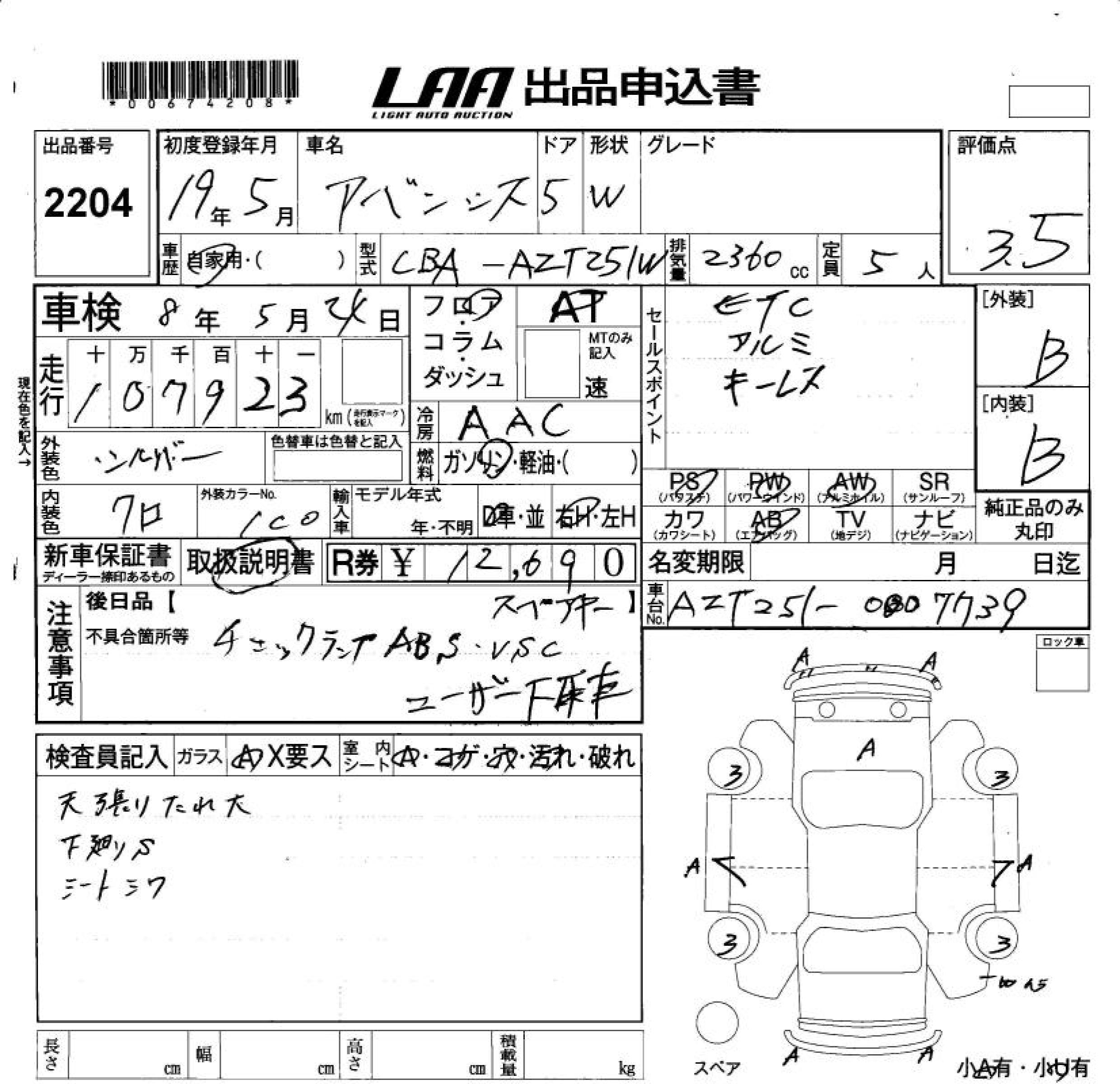 TOYOTA AVENSIS WAGON - лот 2204