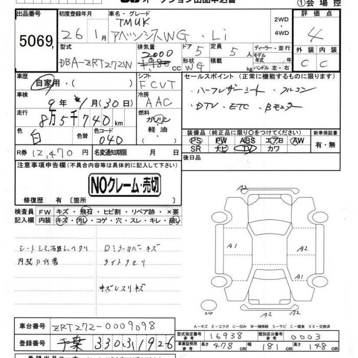 Все аукционы TOYOTA AVENSIS WAGON