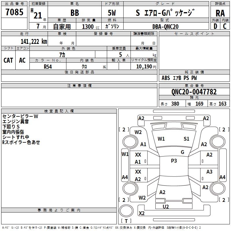 TOYOTA BB S AERO -G PACKAGE - лот 7085