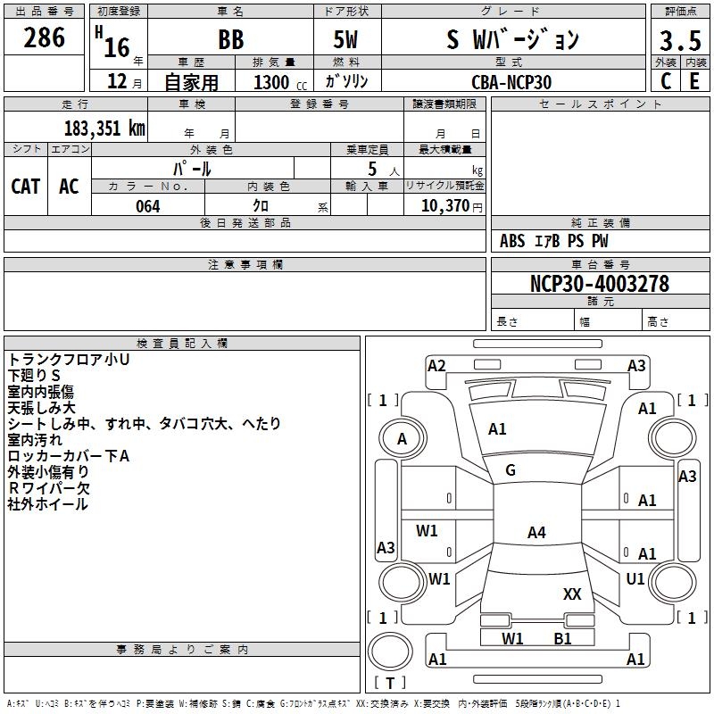 TOYOTA BB S W VERSION - лот 286