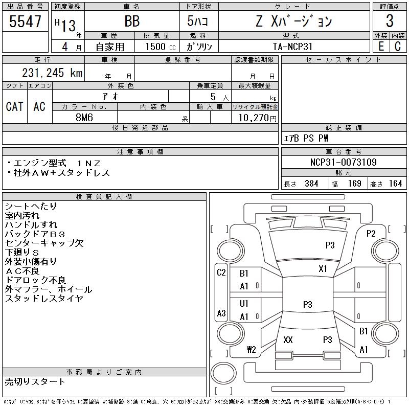 TOYOTA BB Z X VERSION - лот 5547