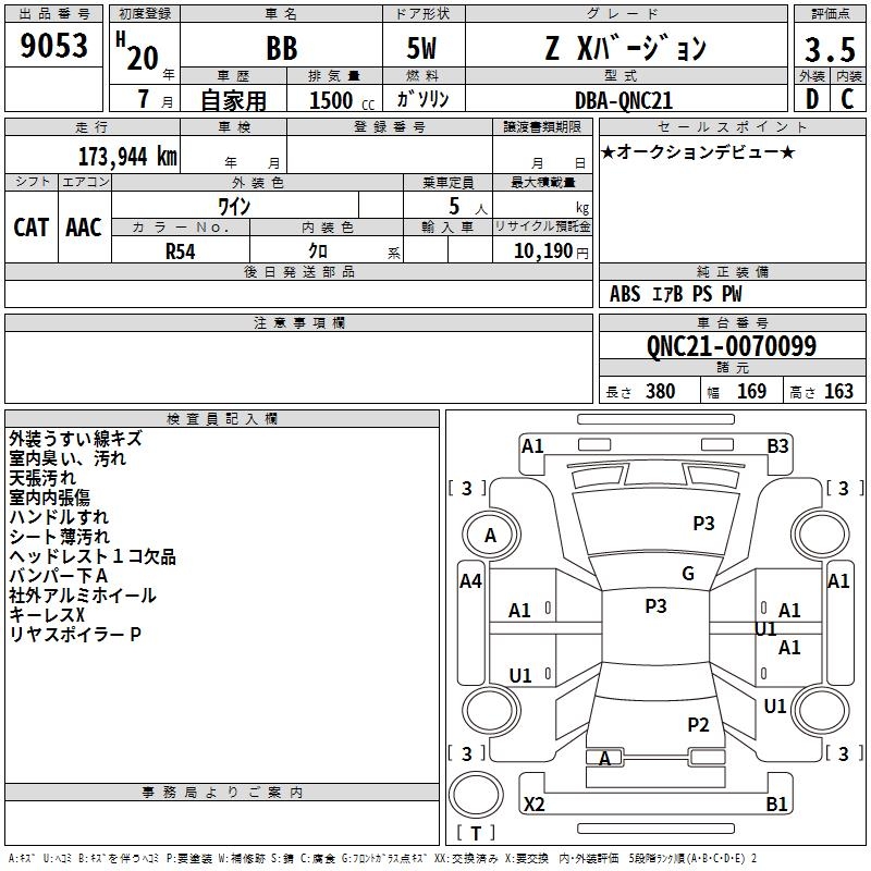 TOYOTA BB Z X VERSION - лот 9053