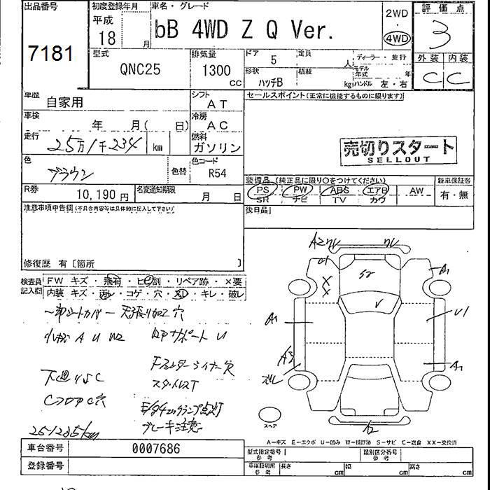 TOYOTA BB 4WD Z Q Ver. - лот 7181