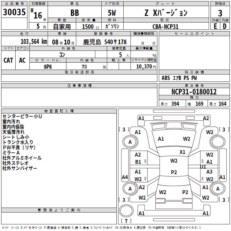 TOYOTA BB Z X VERSION - лот 30035