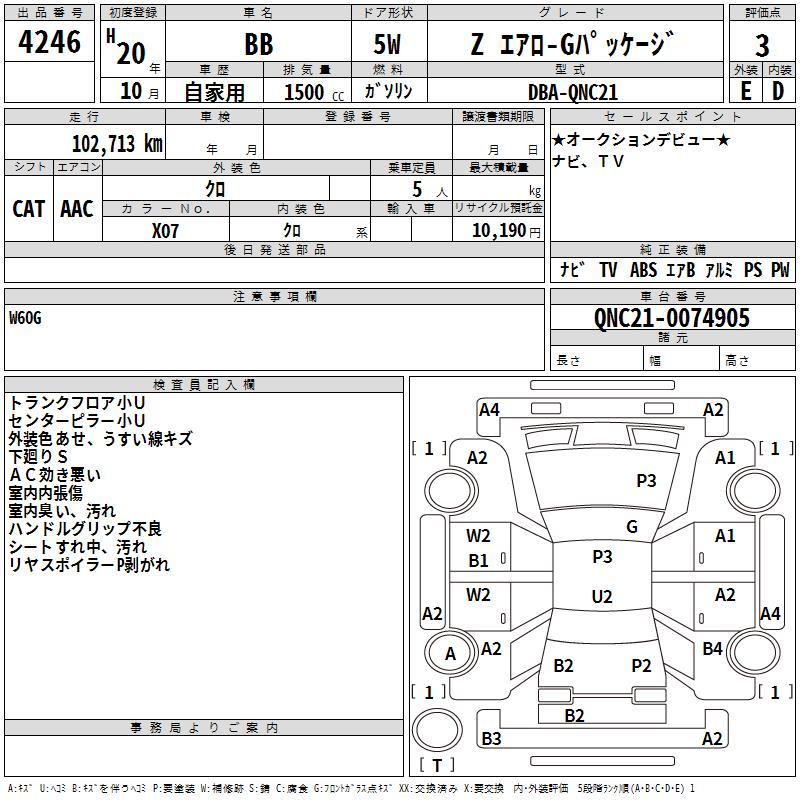 TOYOTA BB Z AERO -G PACKAGE - лот 4246