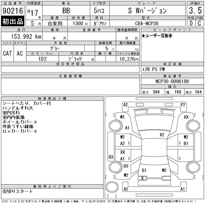 TOYOTA BB S W VERSION - лот 90216