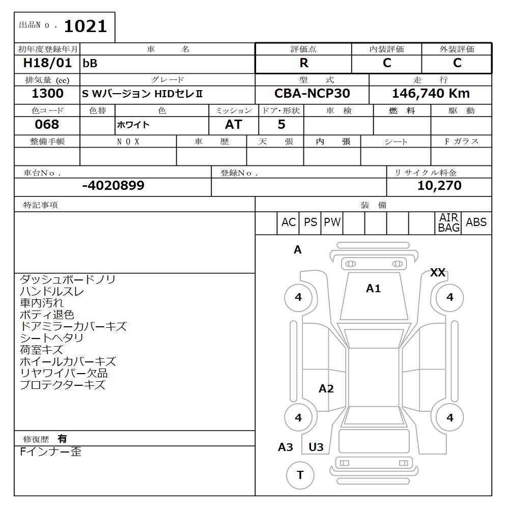 TOYOTA BB - лот 1021