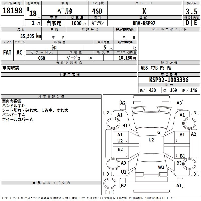 TOYOTA BELTA X - лот 18198
