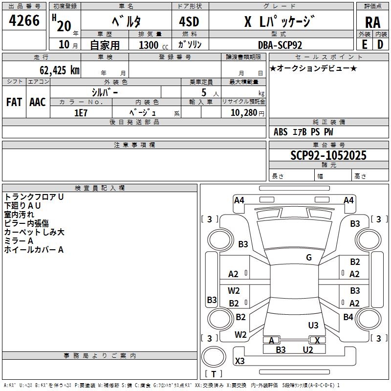 TOYOTA BELTA X L PACKAGE - лот 4266