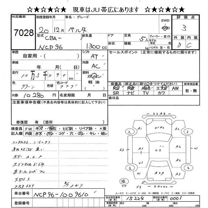 TOYOTA BELTA 4WD - лот 7028