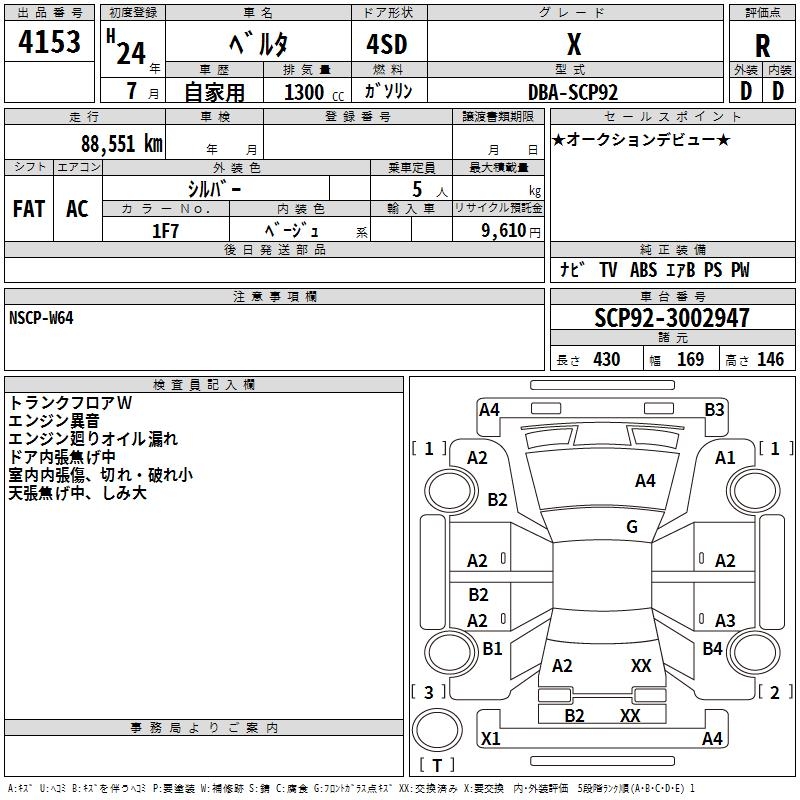 TOYOTA BELTA X - лот 4153