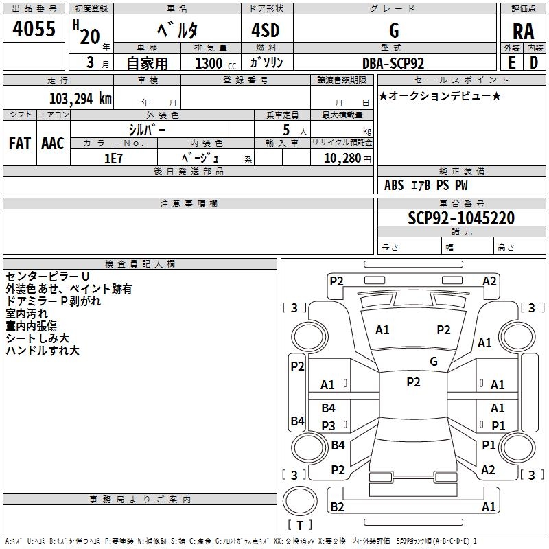 TOYOTA BELTA G - лот 4055