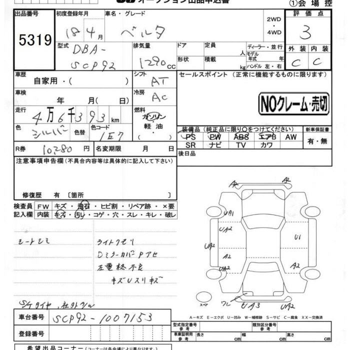 TOYOTA BELTA - лот 5319
