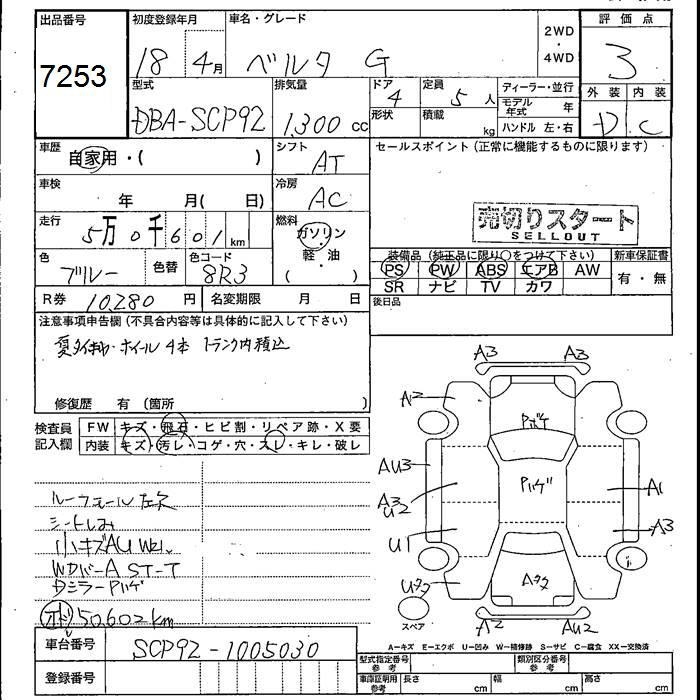 TOYOTA BELTA G - лот 7253