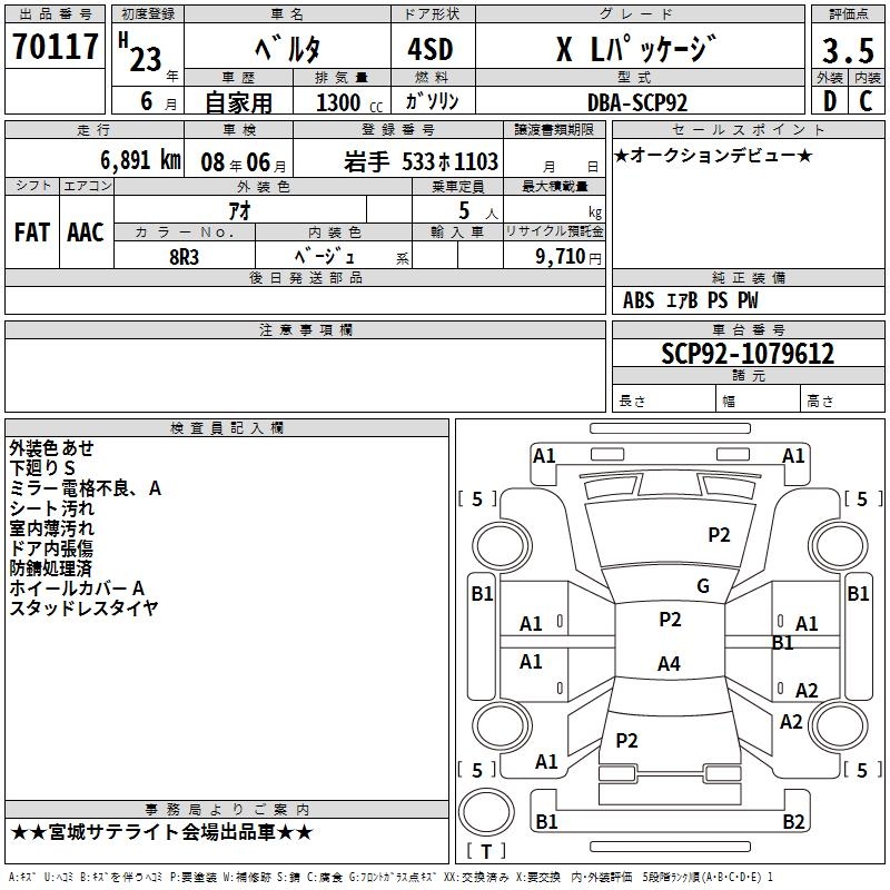Все аукционы TOYOTA BELTA