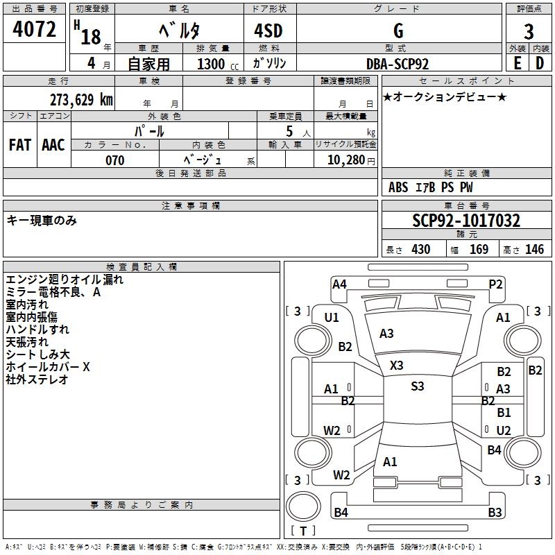 TOYOTA BELTA G - лот 4072