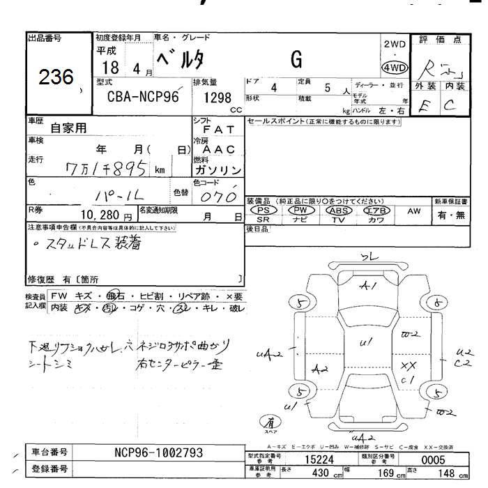 TOYOTA BELTA 4WD G - лот 236