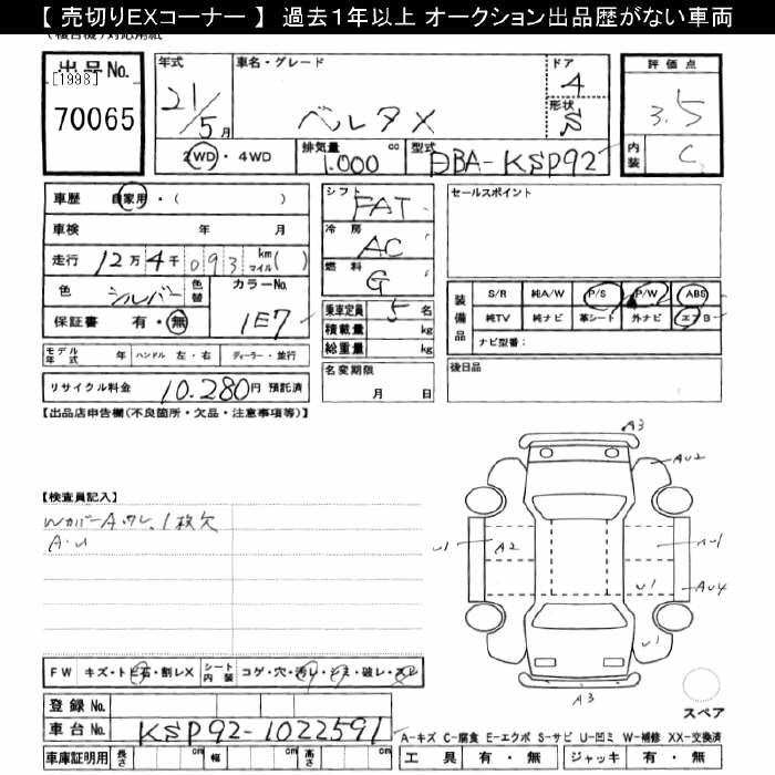 TOYOTA BELTA X - лот 70065