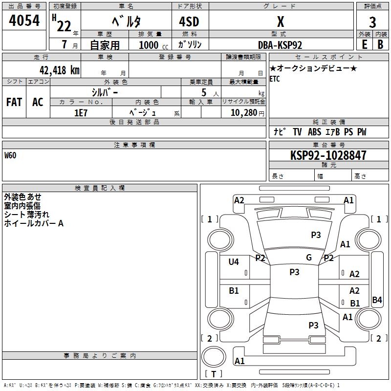 TOYOTA BELTA X - лот 4054