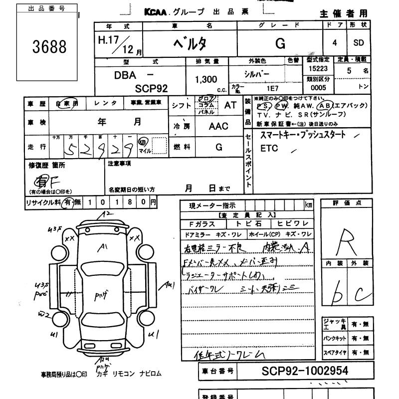 TOYOTA BELTA G - лот 3688