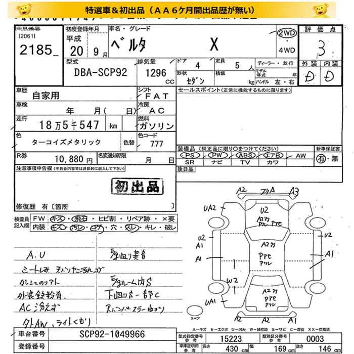 Все аукционы TOYOTA BELTA