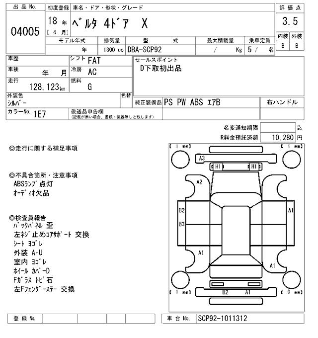TOYOTA BELTA X - лот 4005